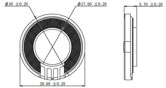 3.Measured characteristic sensitivity(at 0.7W(2.05V) in 10cm) 89± 3dB
